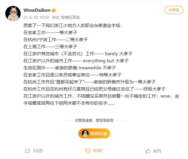 甚至网上还有全国不同地区“一等孝子”“二等孝子”的具体指标。