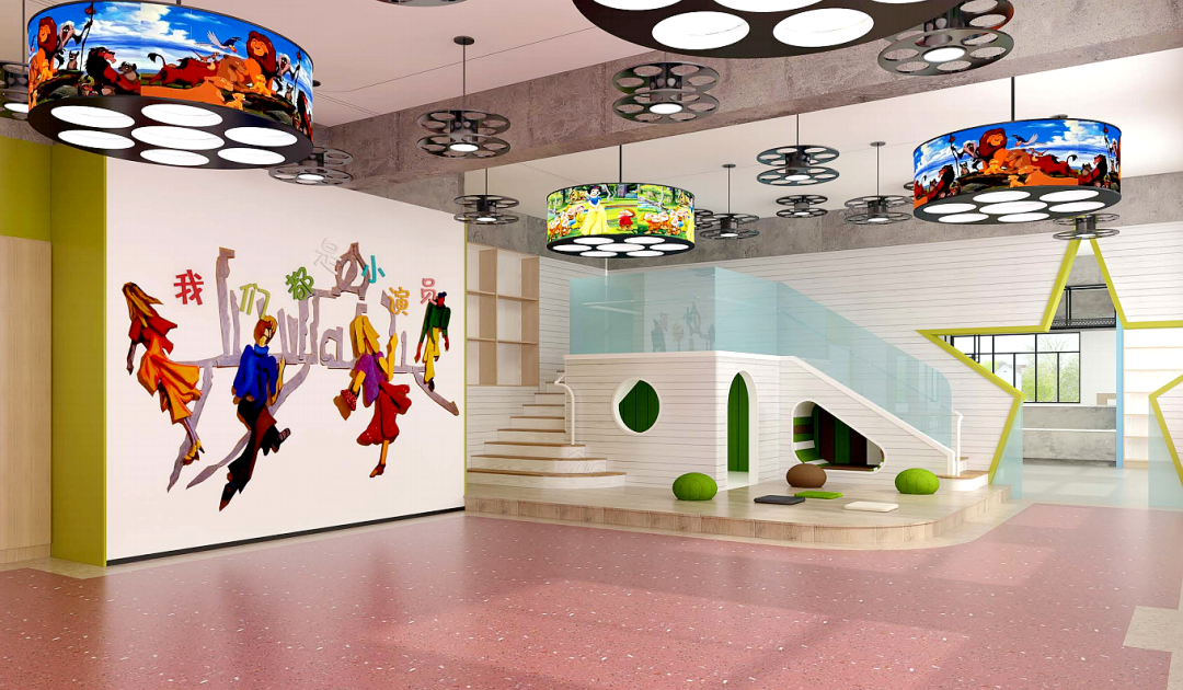 室内设计以“自然、生态、玩中学”为理念,用“影视地铁元素”激发幼儿的好奇心,营造一座充满探索欲的现实儿童乐园。