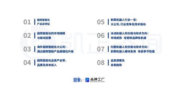 庭院场景是欧美地区消费者需求的热门增长场景,随着用户个性化意识增长、人力成本提升的影响因素增大,智能机器人的技术成本不断降低,也推动了国内一批新锐庭院机器人品牌的诞生。部分品牌发展势头猛烈,在海外市场极具竞争力。本次报告聚焦割草机器人、泳池机器人及扫雪机器人市场的热点品牌、技术方案演化、资本投入、行业发展现状及竞争情况、渠道触达等特征,给出了庭院智能化的趋势与洞察。