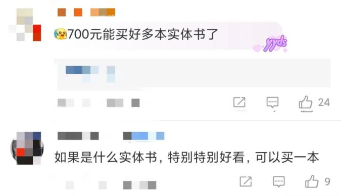 对此,有网友表示“700元能买好多实体书了”“还不如买实体书呢”。