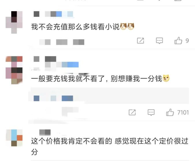 还有网友表示,“不会充那么多钱看小说”。