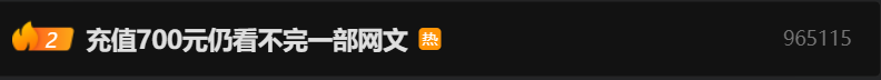 7月12日,#充值700元仍看不完一部网文#话题冲上热搜,引发关注↓