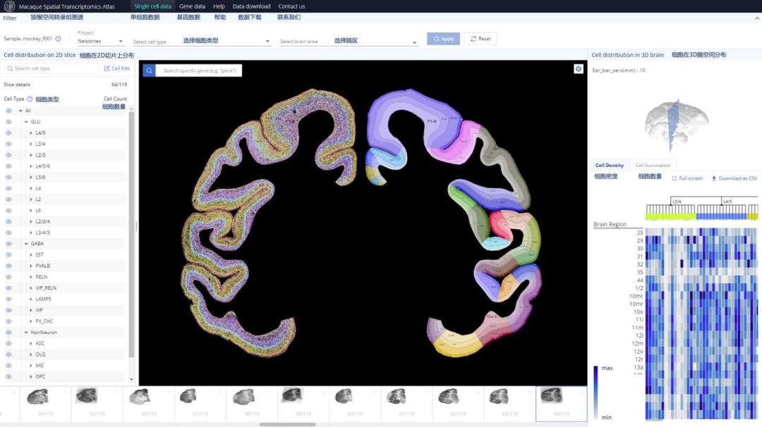 超百人科研团队合作,取得重大成果:全球首个猕猴大脑皮层单细胞空间分布图谱公布