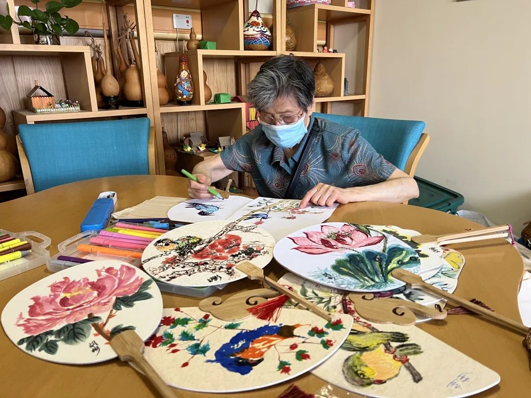 走进彩虹湾养老院,一阵阵清凉扑面而来。空调温度计显示,室内温度25摄氏度。手工室内,几位老人正在制作蒲扇和团扇。客厅内,老人们正在喝着凉茶,看电视、聊聊天,丝毫没有感觉到室外暑热带来的不适。“我们养老院里很凉爽的,工作人员还为我们安排了好多活动。”王阿婆说道。