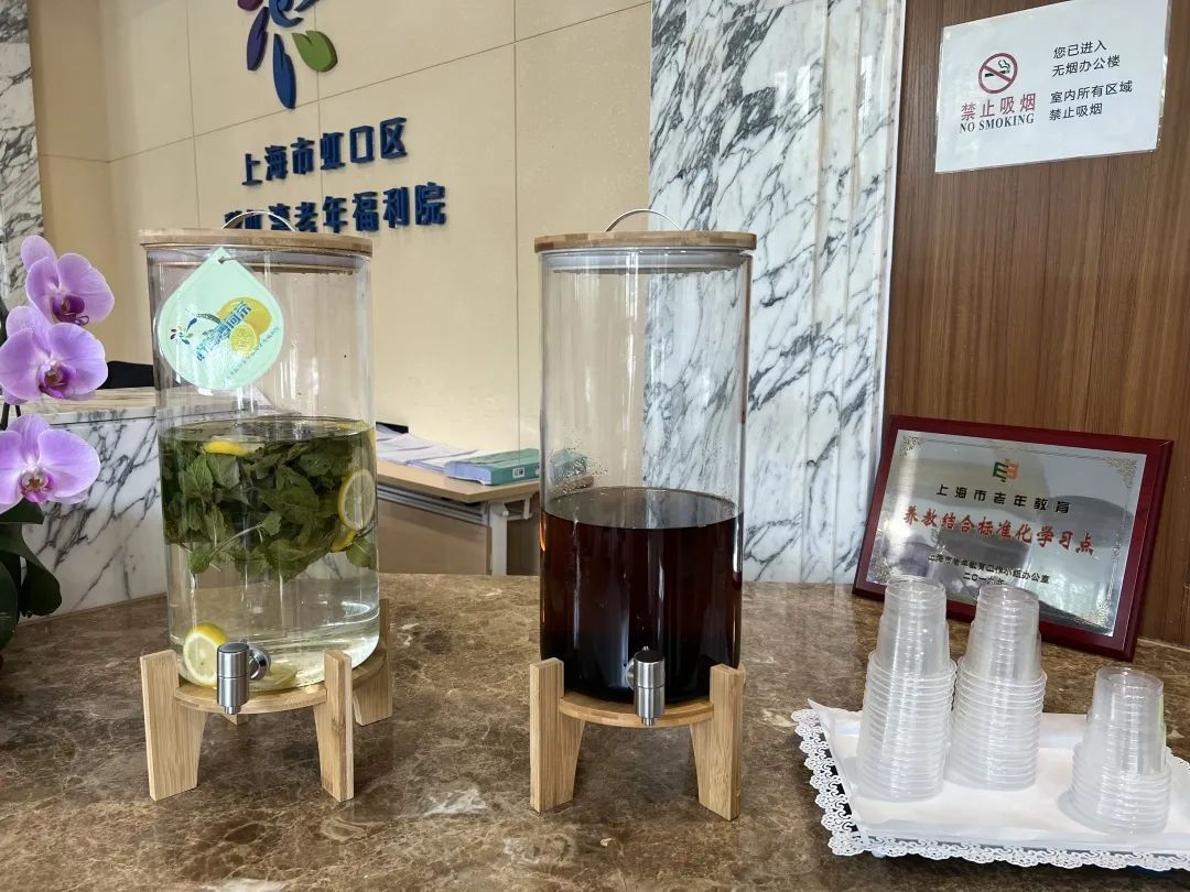 “最近,我们也反复和老人强调,要提高安全防暑的意识,高温天少出门,尽量利用早晚、天凉爽一点的时候,到室外走一走。”彩虹湾养老院院长邓明星表示,作为一家医养结合的养老机构,他们还具备一级医疗门诊窗口,暑热天气,老人一旦有身体不适等症状,可以第一时间得到专业医护人员的干预和救治,确保老人安然度夏。02