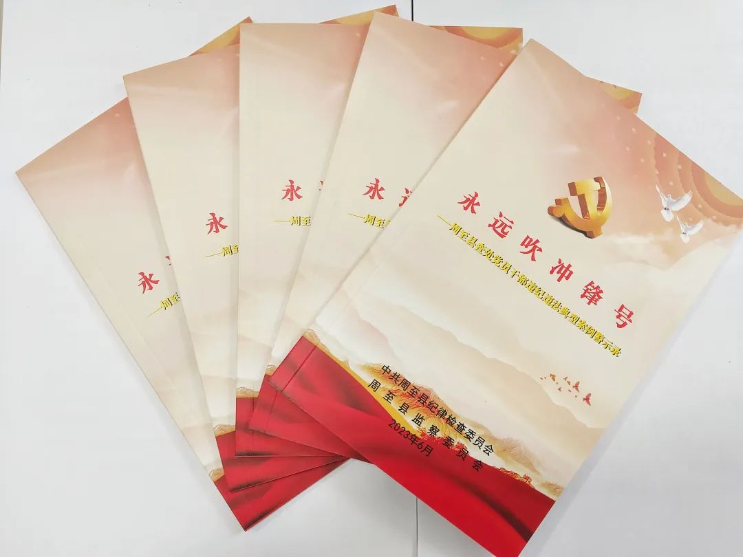周至县纪委监委编印《永远吹冲锋号——周至县查处党员干部违纪违法典型案例警示录》《警示录》通过“案例+剖析+点评”的表现形式,对“案中人”违纪违法过程进行深入剖析,一针见血的警示点评深刻揭示违纪违法问题的腐败机理,由表及里总结教训,推动以案促改、以案促治、以案促建,强烈释放纪法的威慑力,使“一本书”变成警示教育“一堂课”。