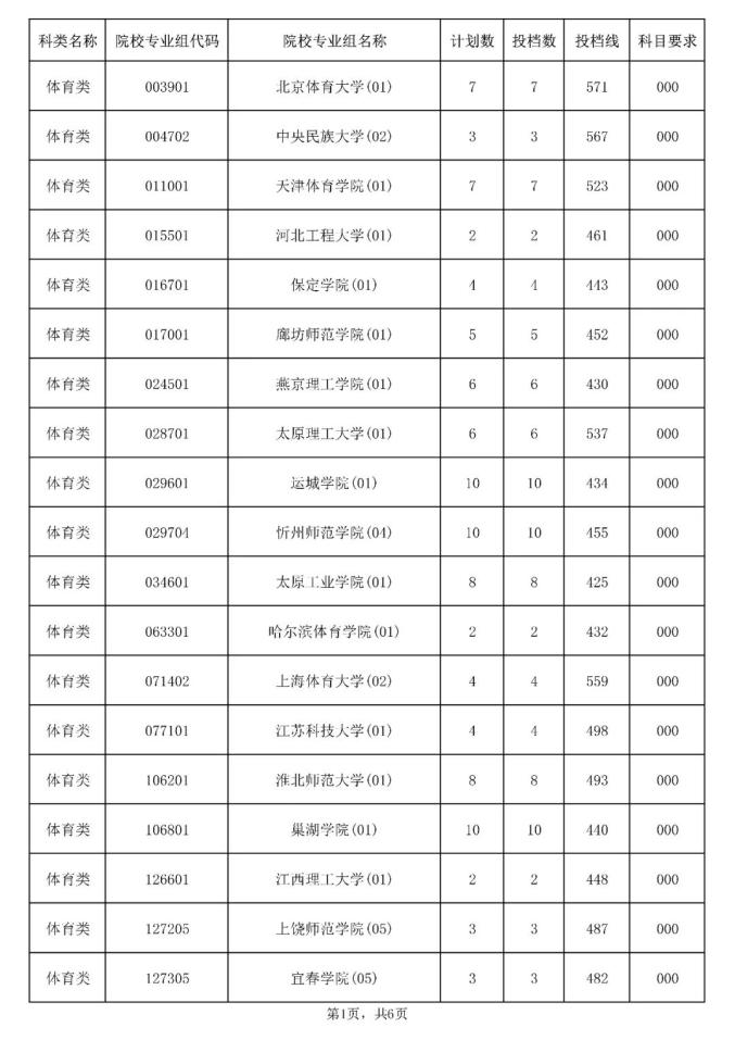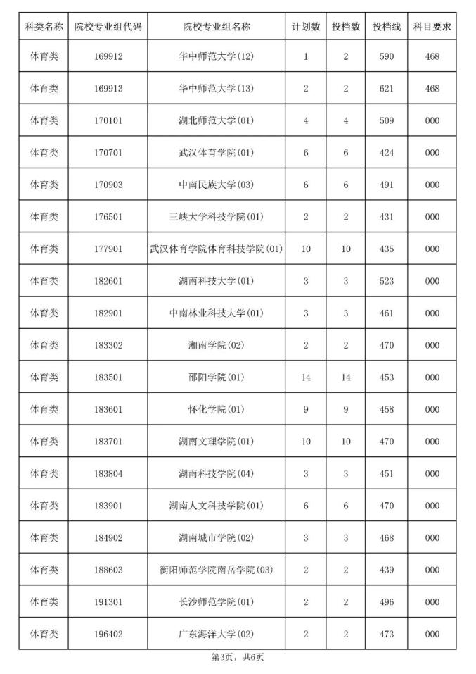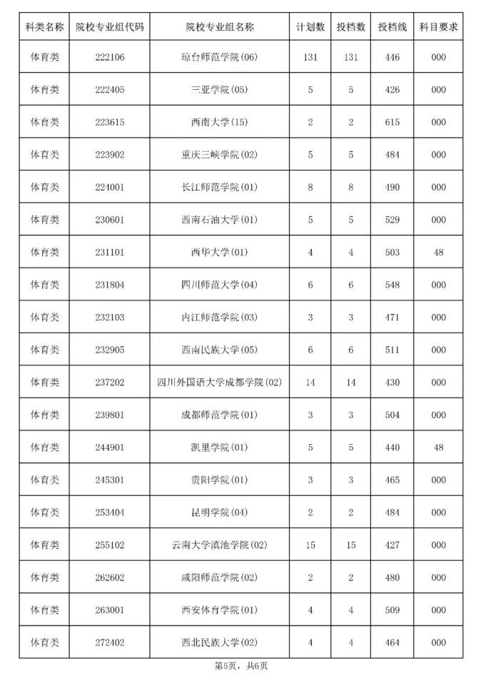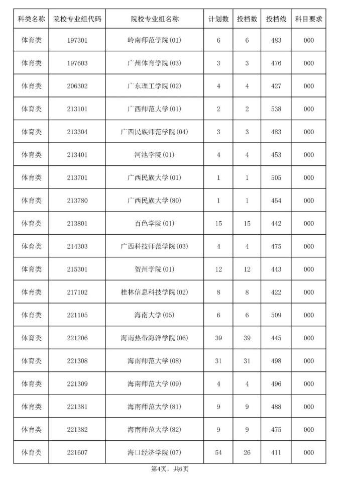 2023年海南省普通高校招生录取本科提前批体育类(含预科)平行志愿院校专业组投档分数线