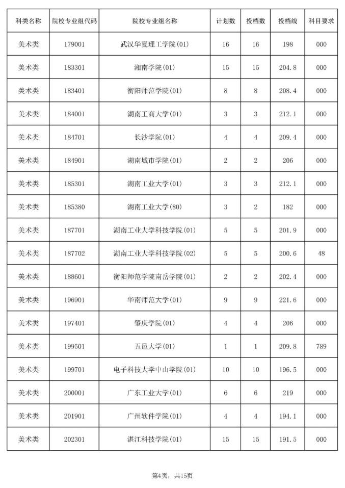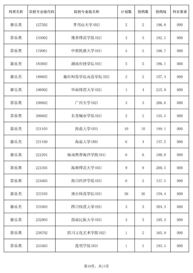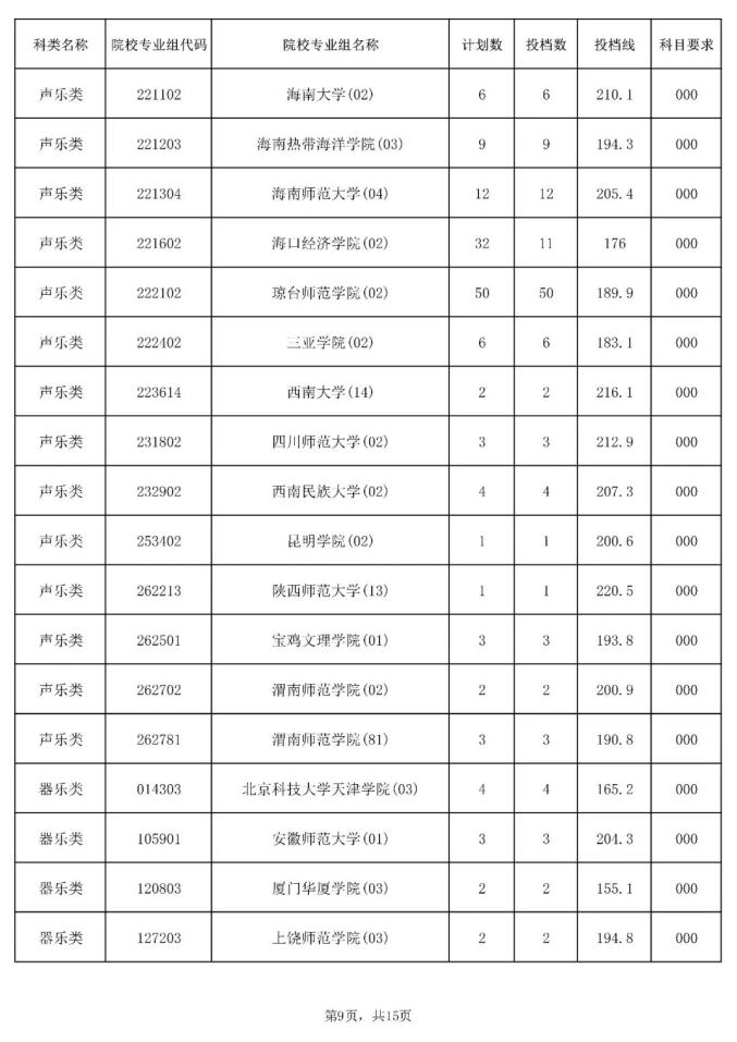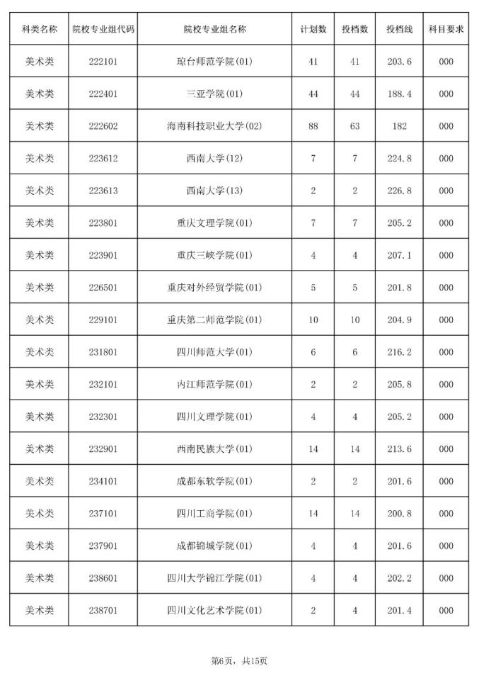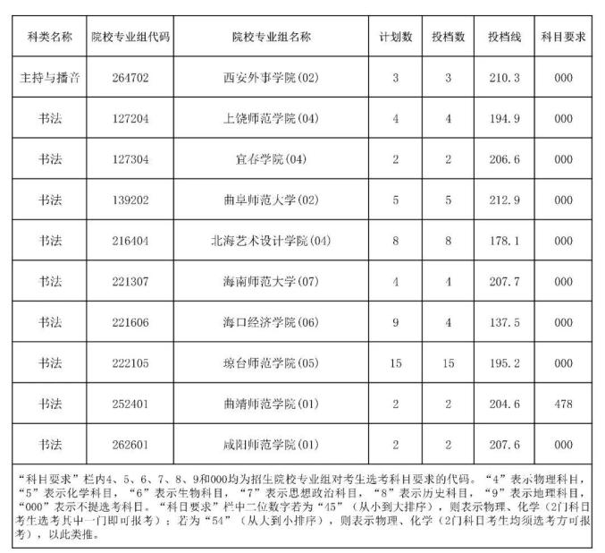 2023年海南省普通高校招生录取本科提前批艺术类平行志愿院校专业组投档分数线