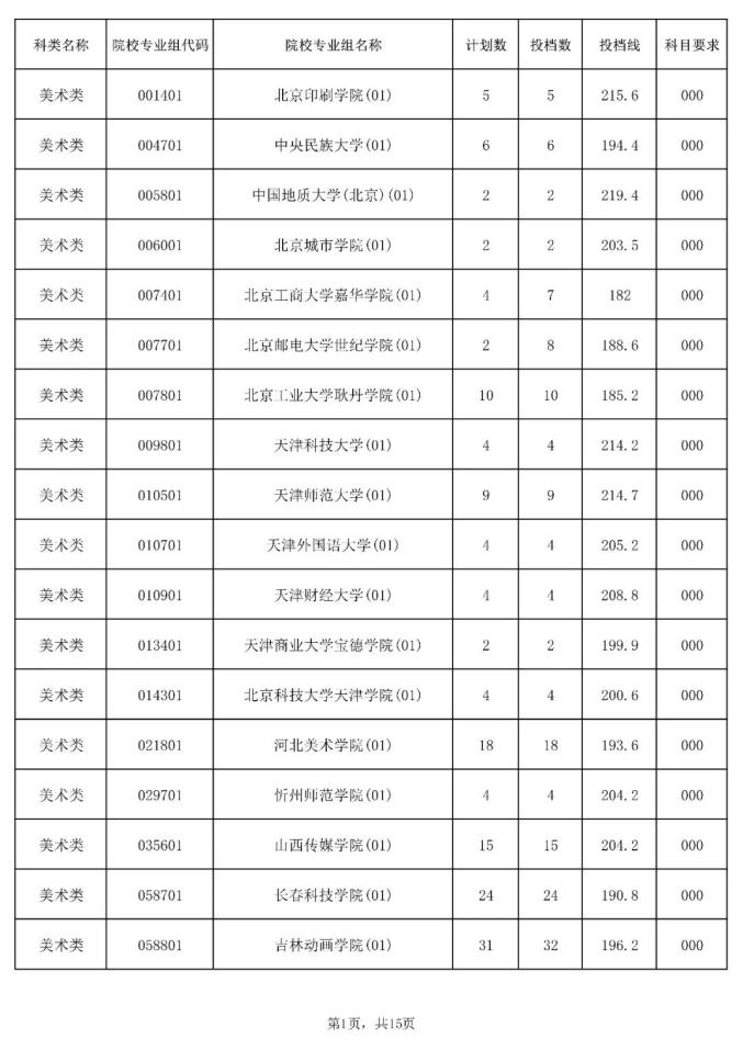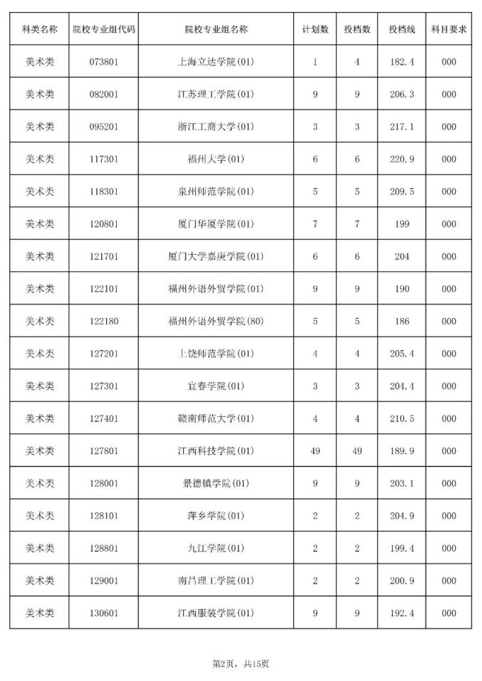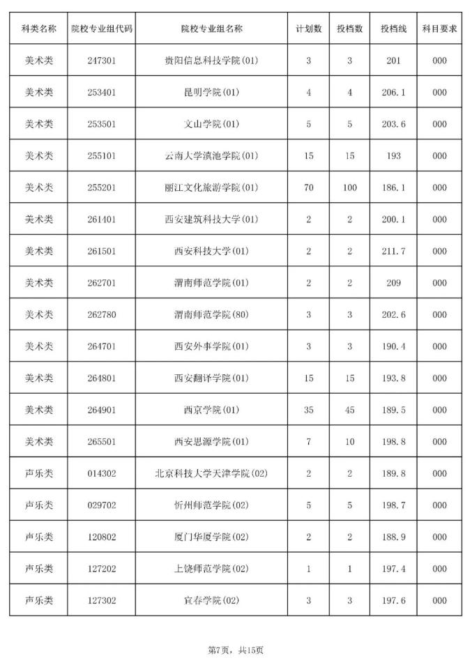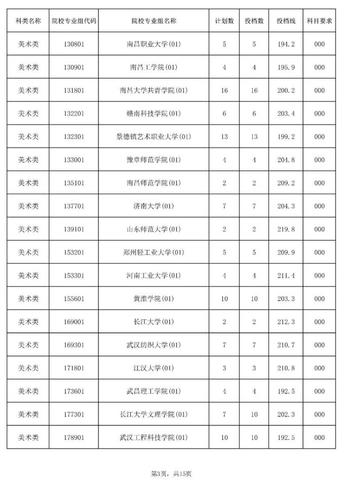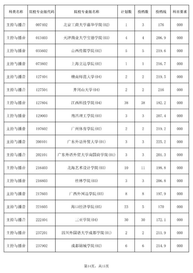 2023年海南省普通高校招生录取本科提前批艺术类平行志愿院校专业组投档分数线