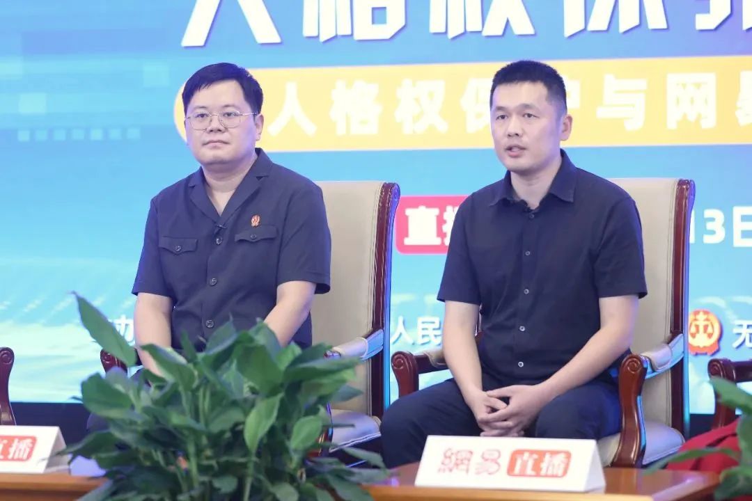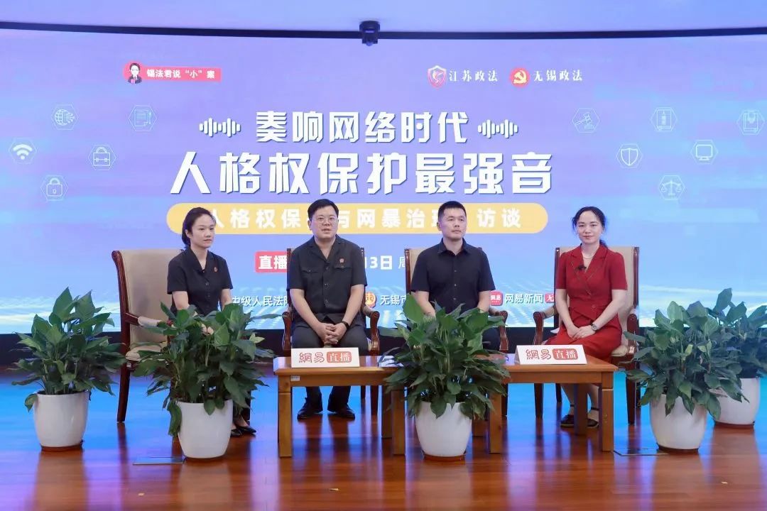 7月13日下午,无锡市中级人民法院《锡法君说“小”案》栏目直播间以“奏响网络时代人格权保护最强音”为主题,邀请江南大学法学院副院长叶敏、无锡市滨湖区互联网舆情中心主任糜汶锴、无锡市滨湖区人民法院法官彭云翔做客,和广大网友交流有关人格权保护与网暴治理相关话题。