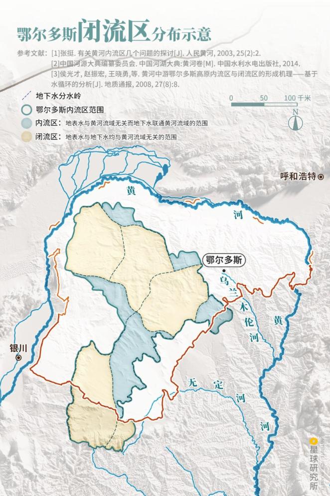 (鄂尔多斯闭流区分布示意,制图@松楠/星球研究所)