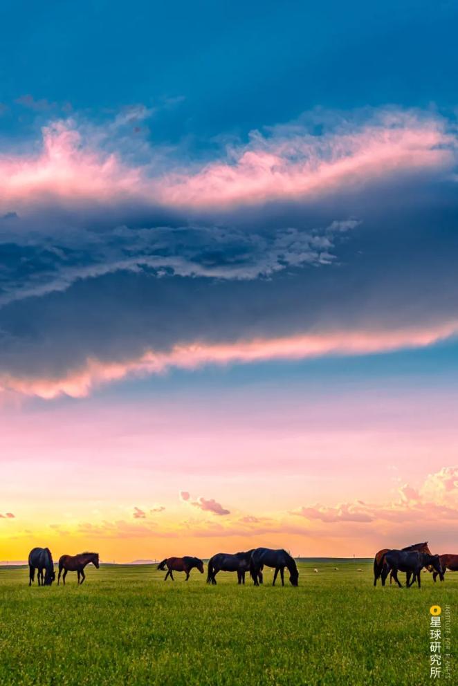 云蒸霞蔚(晚霞下的骏马,摄影师@苏大)