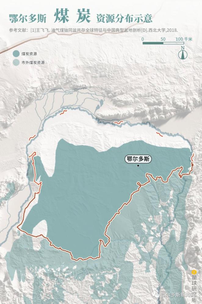 (鄂尔多斯煤矿与天然气资源分布示意,制图@松楠/星球研究所)▼