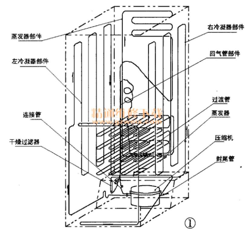 冰箱内部各种管道、线路错综复杂,有的就是装着二氟甲烷的金属管。