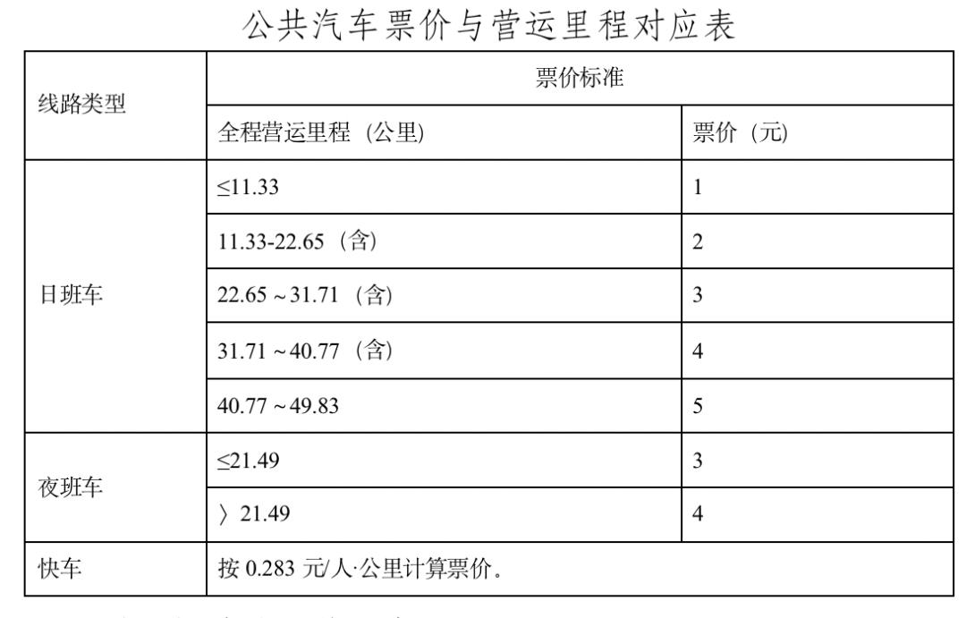快车、夜班车基础票价不变