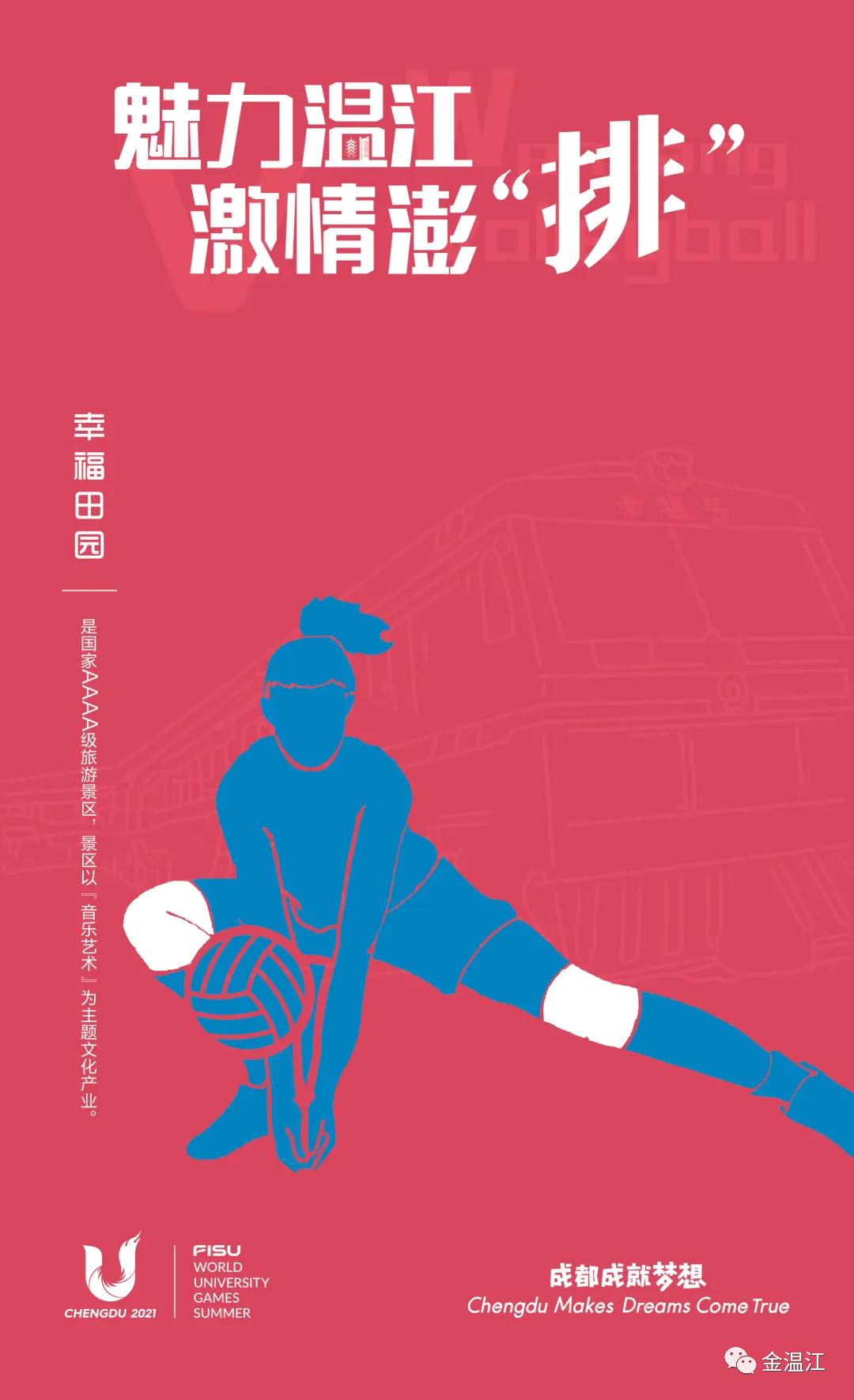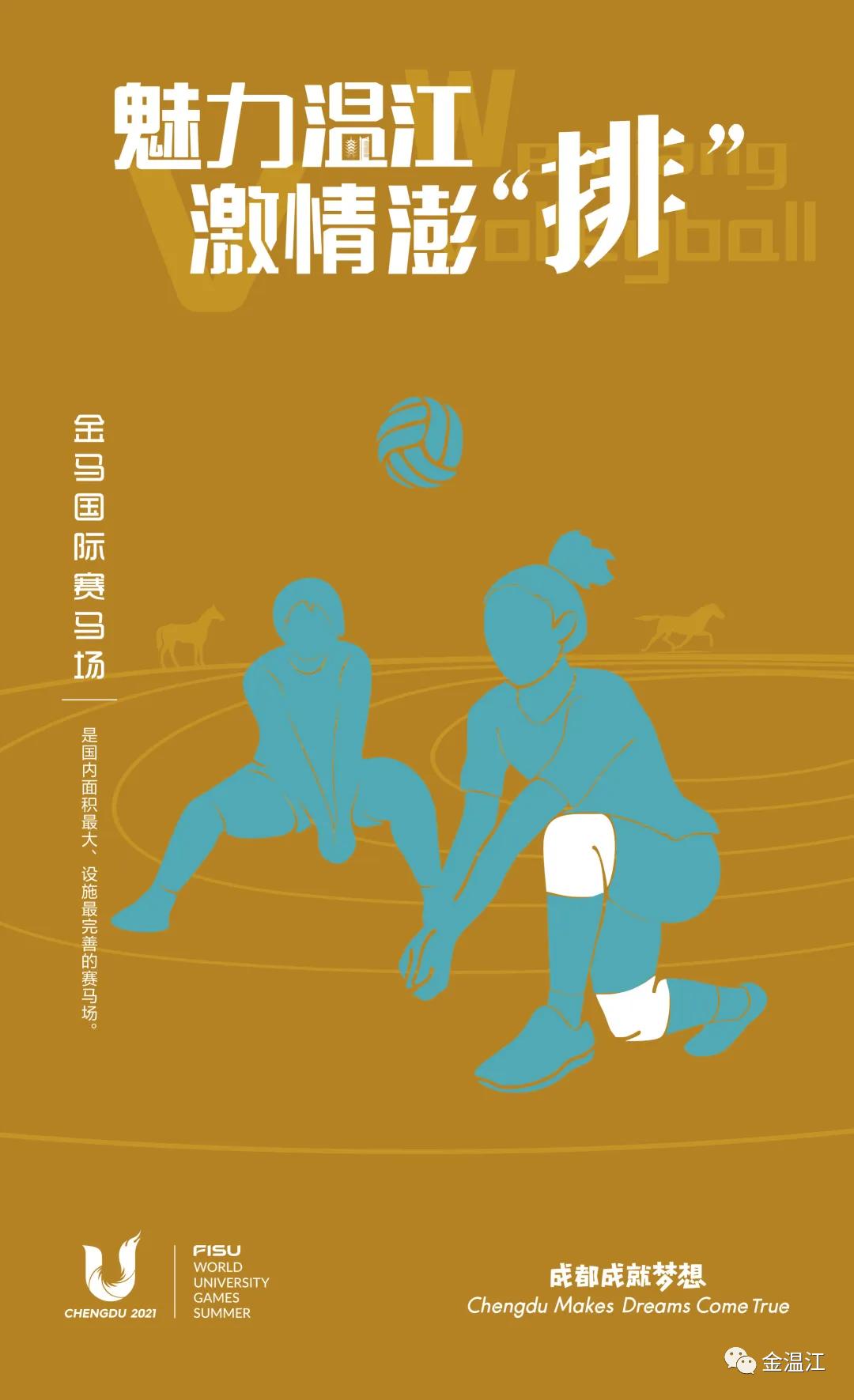 位于温江的交职院排球场馆中心弘毅馆,是成都大运会五个排球场馆之一。温江作为四千年古蜀鱼凫文明的发祥地,有着文庙、古城墙、陈家大院等历史文化遗迹,以及北林绿道、星河World滑板公园、金马国际赛马场、幸福田园、鲁家滩湿地公园等体育运动设施和休闲娱乐场景。随着赛事的临近