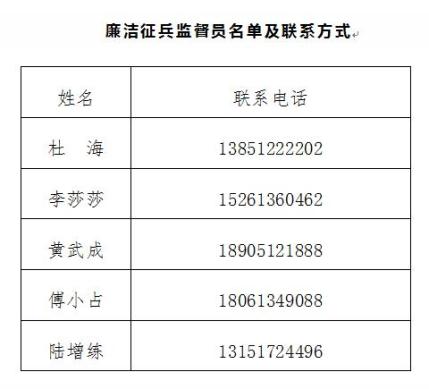 灌云县2023年廉洁征兵监督员名单及举报电话、信箱公示