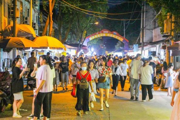到了夜宵点,贵池路灯火通明、虾香四溢,三五成群的男女齐齐涌入贵池路,围坐一起对酒当歌、大块吃虾、大力碰杯、大碗喝酒,在人声鼎沸的岁月中留下印记。夜色打卡路线NO.3