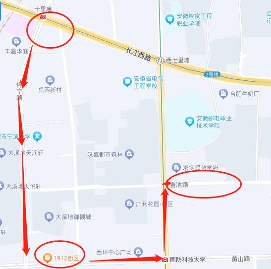 路线指引首先乘坐地铁2号线,至十里庙站,游玩后可骑行至金大地、贵池路美食街。