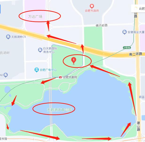 合肥大剧院→天鹅湖公园→天鹅湖万达