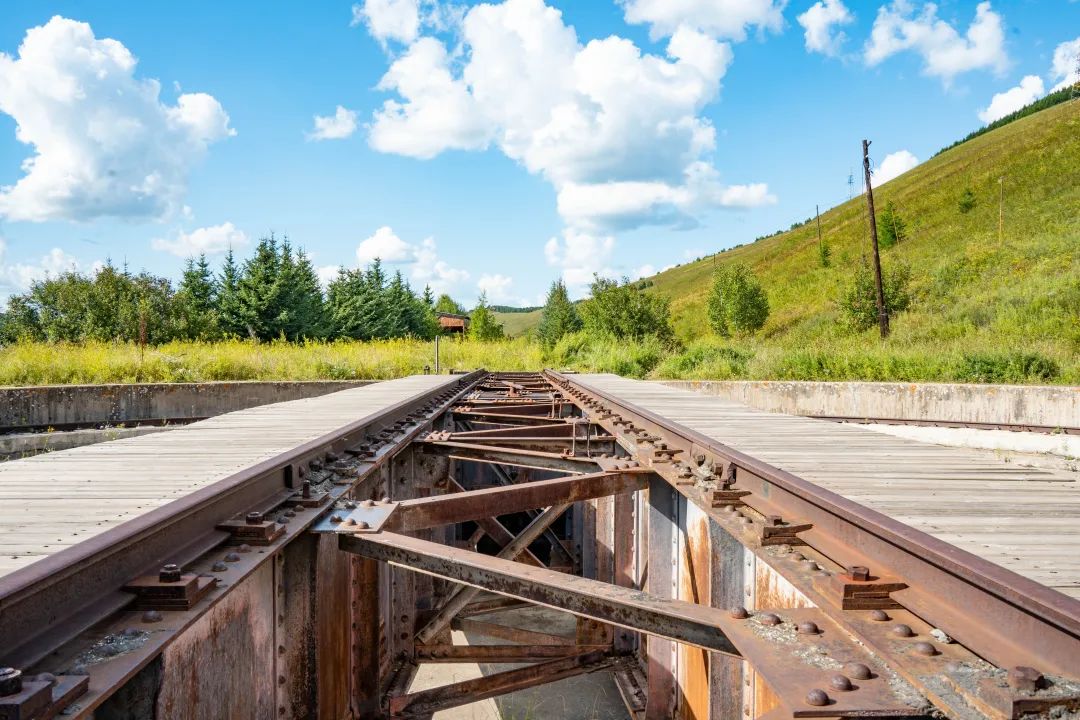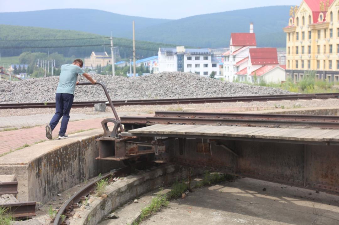 在存车线东侧,阿尔山站北侧 1 千米处的侧线上,有一处机车转车盘遗址,