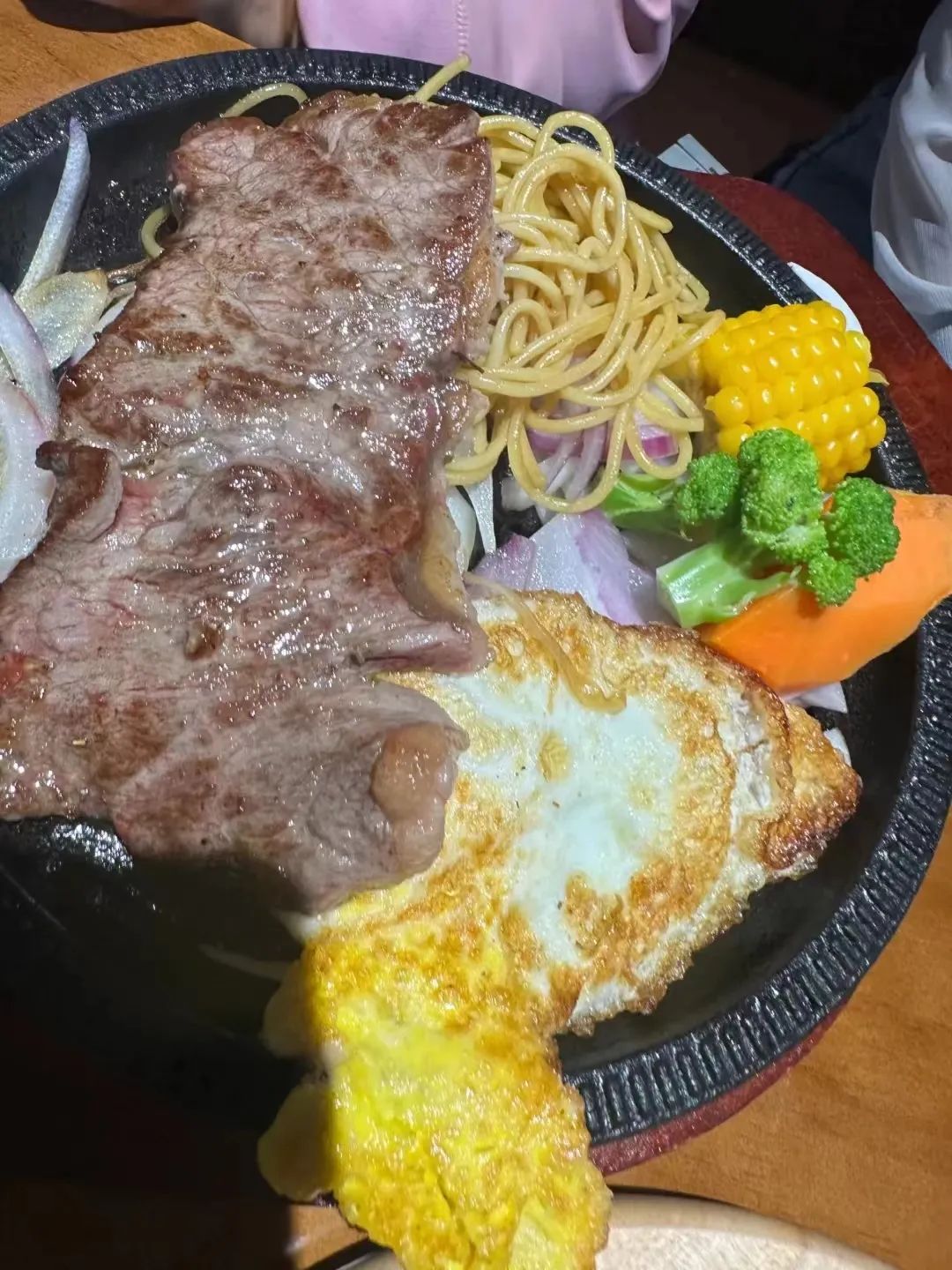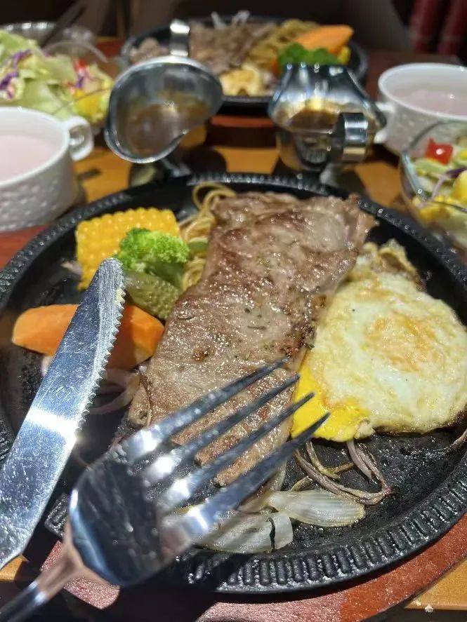 出餐配上烧热的铁板和酱汁,