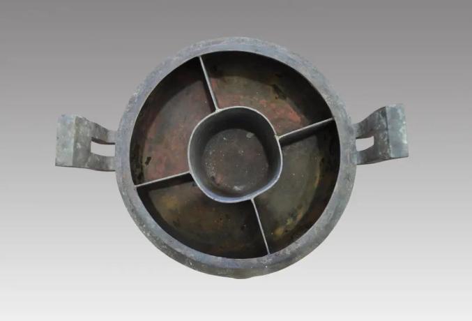 △海昏侯墓出土的青铜三足鼎与现代涮肉铜锅相似同为汉代的这个三足鼎