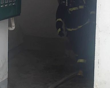 消防员到场后发现小区四楼窗户有烟雾冒出