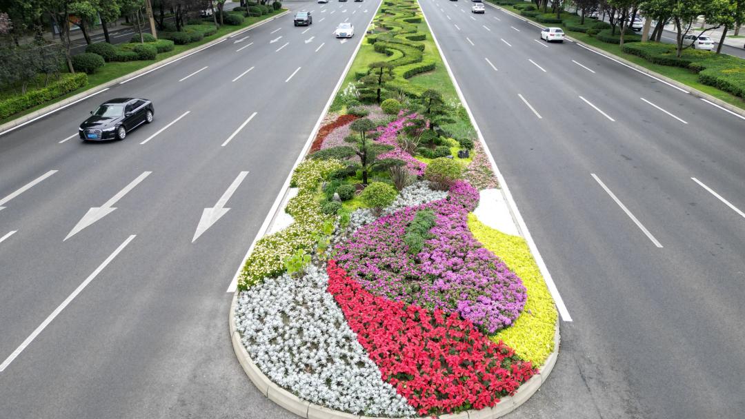 “街边的绿化带随处可见高低错落的鲜花绿植,走在路上心情都变好了。”