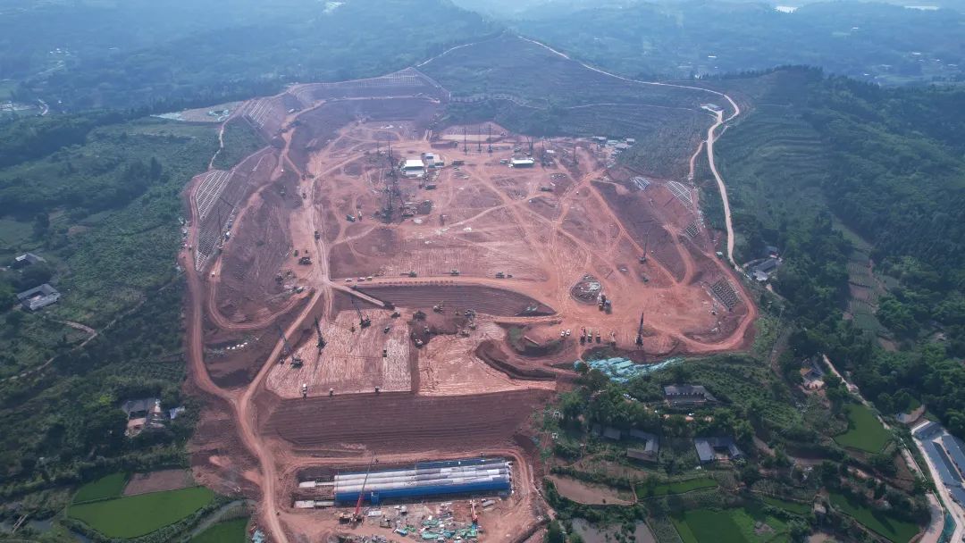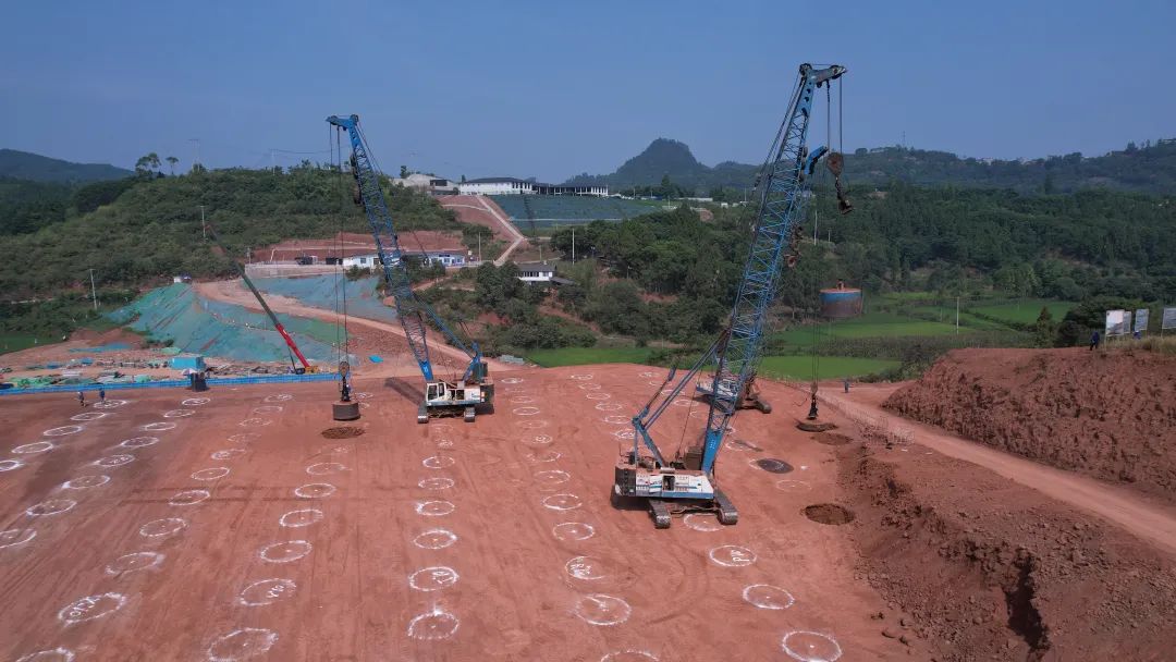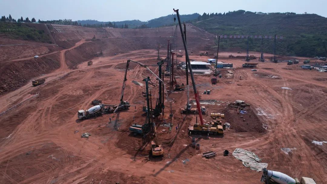 “天府南1000千伏变电站作为整个川渝特高压交流工程‘Y字形’枢纽节点,是在建挖填方量和安装工程量最大的特高压变电站,工程自2023年2月9日开工以来,始终坚持‘六精四化’的建设理念,通过精准场平策划、精细设备制造、高效电气安装、深化绿色建造等措施,践行‘双碳’目标,打造天府南绿色低碳示范特高压变电站。”天府南1000千伏变电站新建工程业主项目副经理陶凌介绍道,“我们还结合工程自身特点,制定了网格化管理和分区移交措施,将串联工序改为并联工序,高效推进工程建设。目前,四通一平已完成71%,桩基工程已完成33%,每天现场有近400名施工人员、近90台机械奋力施工,计划整个工程于2025年迎峰度夏前正式投运。”