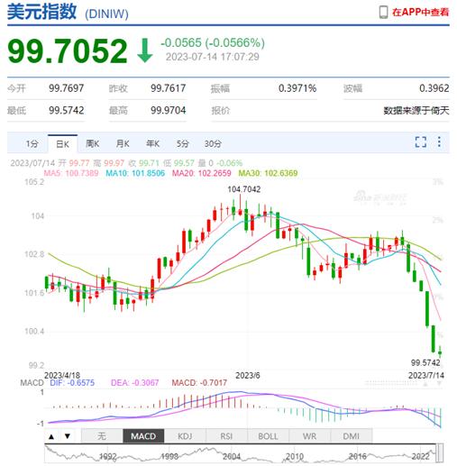 7月13日晚,美元指数跌破100点大关,是2022年4月以来的最低水平。