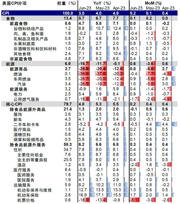 首先,目前美国的通胀问题得到了阶段性的改善,核心CPI环比增速已回落至疫情前水平。6月美国CPI数据显示,美国核心CPI环比仅上涨0.2%,略低于预期0.3%,较1-5月份0.4%的水平明显下了一个台阶,这也是2021年二季度美国通胀上行期以来,首次回归至疫情前0.2%的均值。