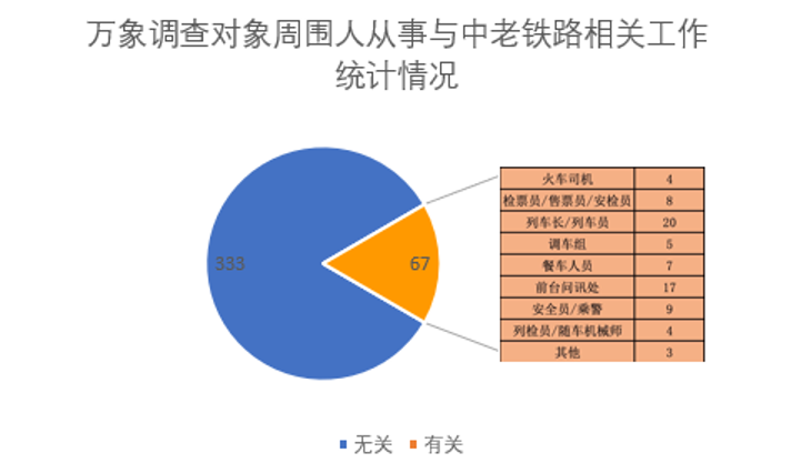 在我们的调研样本中,有58.25%的调研样本考虑过参与中老铁路相关工作,比例很高,说明中老铁路对老挝就业市场的影响很大。有16.75%的调研样本有家人或亲朋正在从事或曾经从事与中老铁路相关的工作,分布在各个岗位,分别为:列车长/列车员、安全员/乘警、调车组、列检员/随车机械师、餐车人员、检票员/售票员/安检员、前台问询处人员、火车司机及服务于其他相关岗位的工作人员。在我们的400位调研样本中,有67例样本有亲友从事与中老铁路相关工作,可见中老铁路的建设与开通为当地创造了较多就业机会。除此之外,中老铁路为万象带来了很多配套基础设施建设工程,需要很多老挝民众参与其中,火车站周围新建的餐馆和休闲娱乐场所也提供了很多服务型工作岗位,这些都是中老铁路间接带来的工作机会,缓解了当地居民的就业压力。老挝是当今世界最贫困的国家之一,就业状况的改善对提高当地居民生活水平具有重大意义,老挝民众对中老铁路的广泛好评不仅因为出行的便利,更是看到了中老铁路对其生活与工作带来的隐形推动力。
