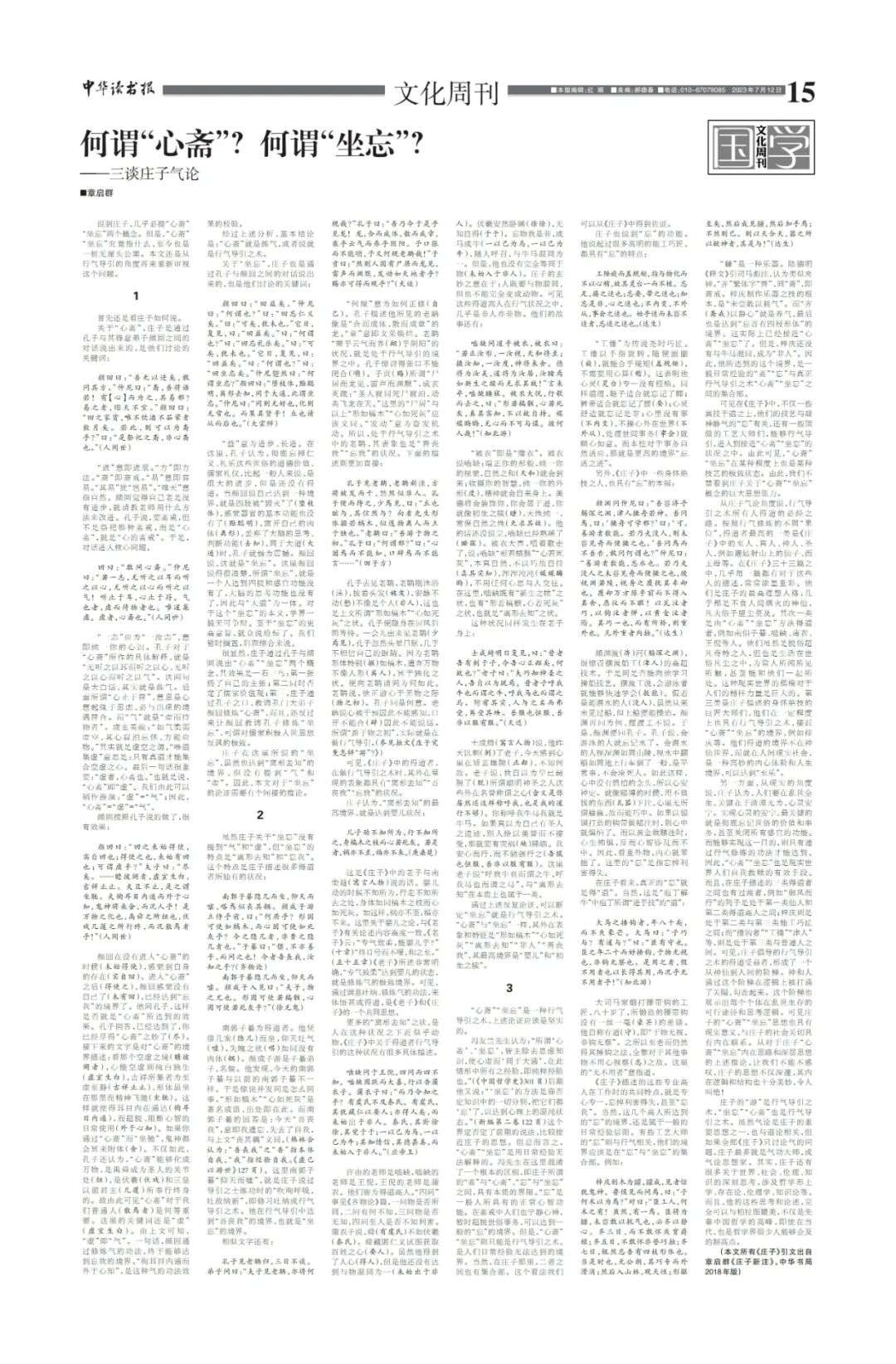 原标题:《何谓“心斋”?何谓“坐忘”?》