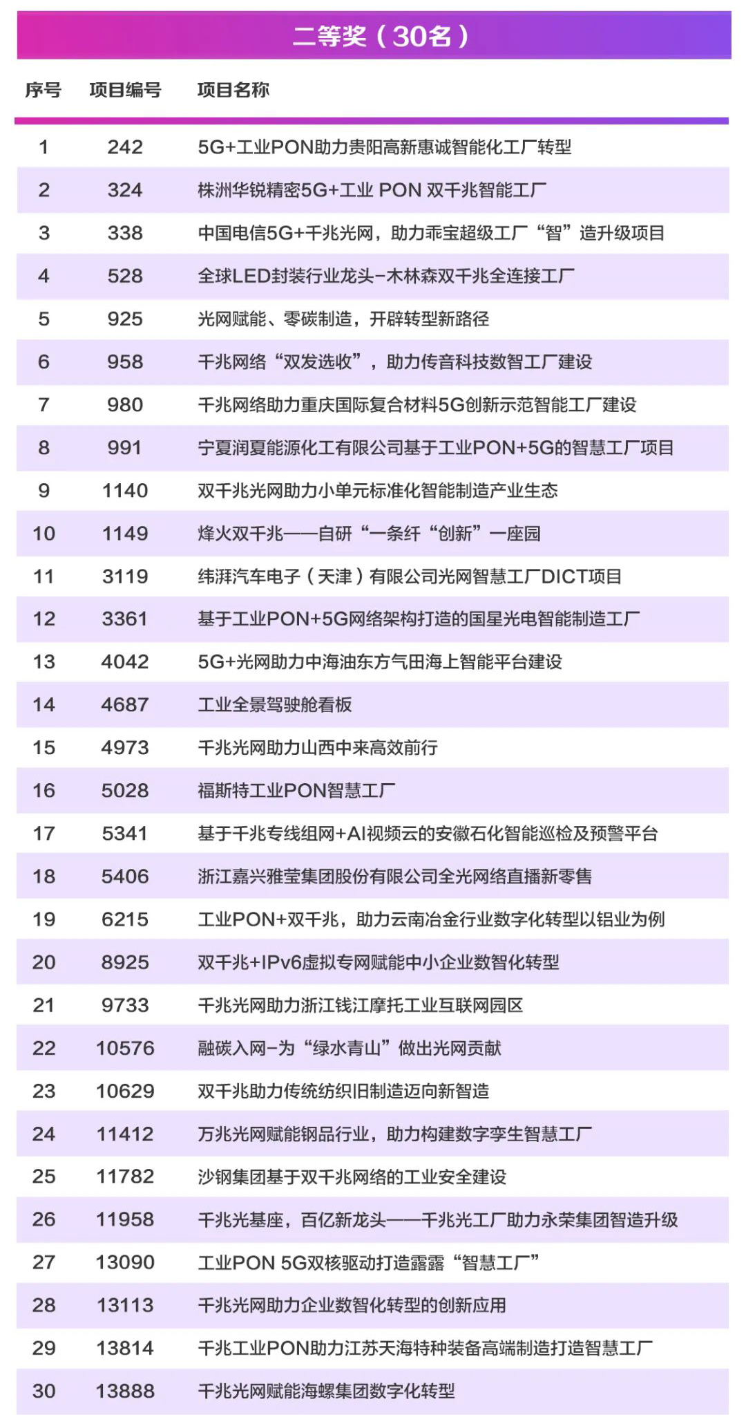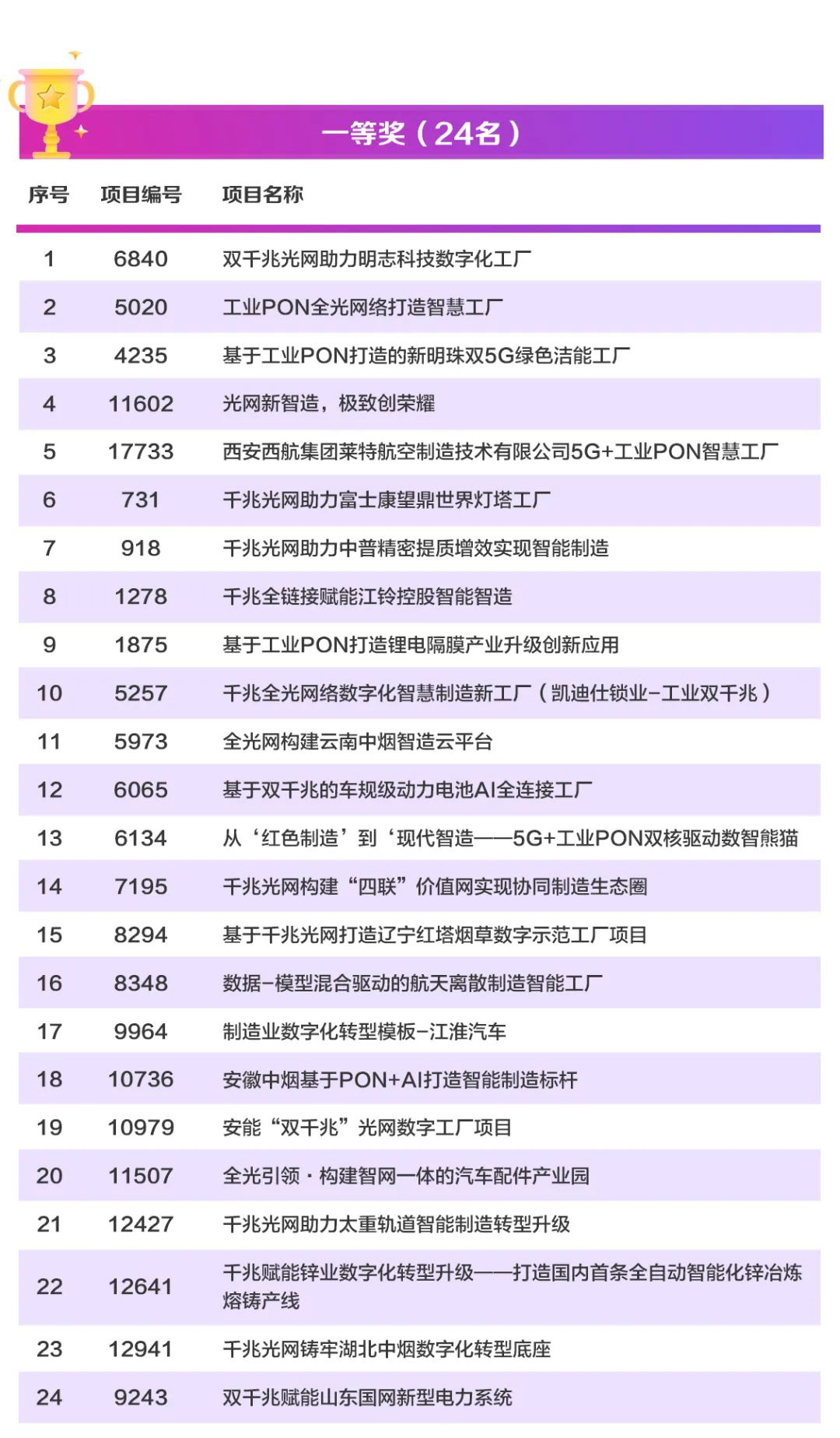 获奖名单