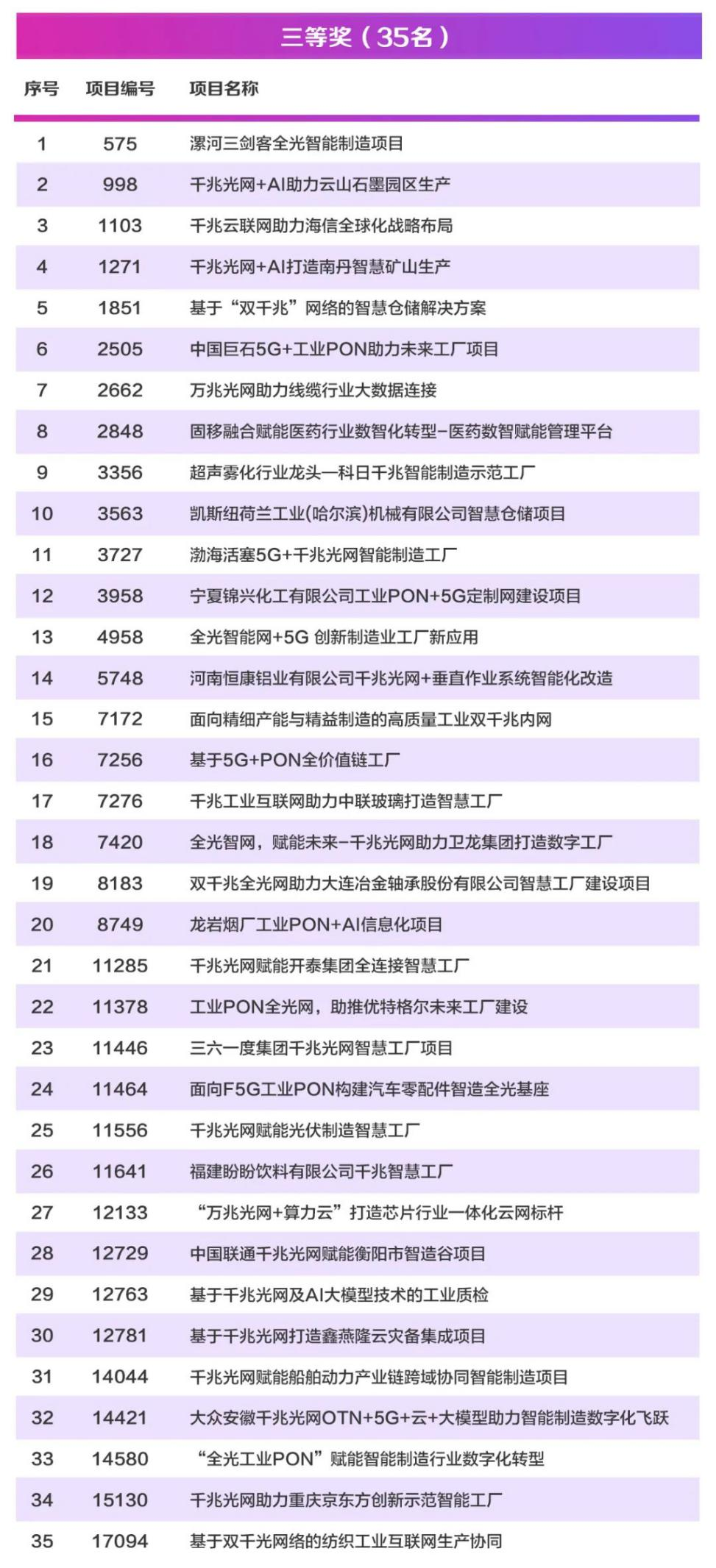 专题赛从今年6月初正式启动以来,累计征集参赛项目近1000余个。经过初赛、复赛激烈角逐,确定120个项目入围决赛。经由信息通信行业、相关专业领域的业内知名专家、领军人才、知名高校的专家对团队路演案例评审,最终评选出一等奖24名,二等奖30名,三等奖35名。