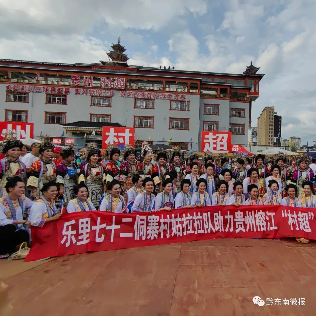 乐里七十二侗寨村拉拉队助力“村超”(来源:村超纪实)为了烘托“村超”比赛气氛,每个参赛村都组织了民族文化表演队和拉拉队。