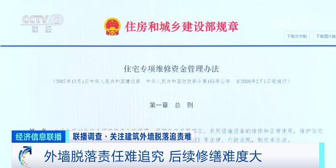 专家表示,当高温、大风、降雨、冰雹等极端天气出现,也可能加速房屋外墙老化,从而出现脱落。外墙脱落责任难追究 后续修缮难度大