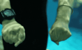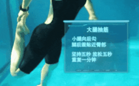 腹部抽筋:深吸一口气,仰躺或是趴在水面,手脚伸直、用力拉伸,坚持五秒、放松五秒,重复一分钟