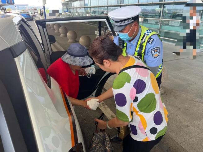 警车送其一家赶往机场