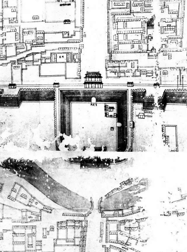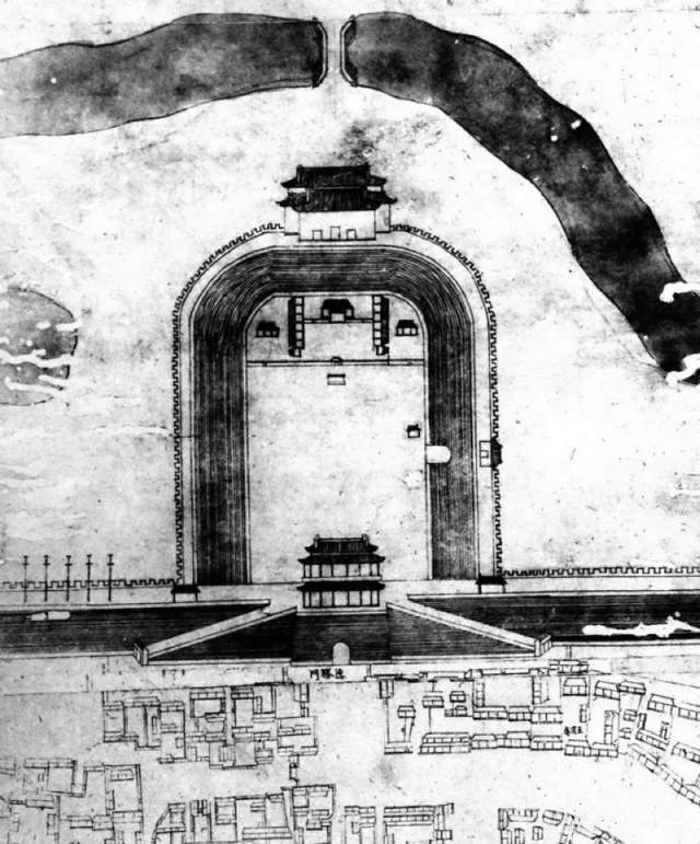 彼时皇室用水由玉泉山来,由西直门运进,当时的水吏曾在西直门瓮城门洞中镶嵌汉白玉一方,石面上没有字,全是天然形成的水纹,这便是为老北京人津津乐道的“西直水纹”。西直门建造时,还设计有排水功能,在有敌军妄图从西直门入侵北京城时,就可以放水抵御。