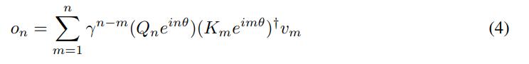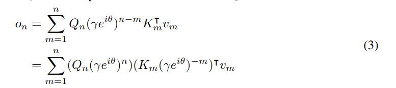 称为 xPos,即为 Transformer 提出的相对位置嵌入。进一步将 γ 简化为标量,公式(3)则变为