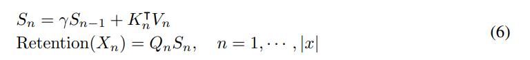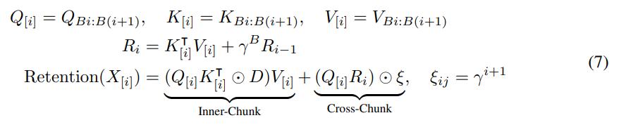 这里的 Q, K, V, γ 和公式 5 相同。3)Retention 分块循环表征