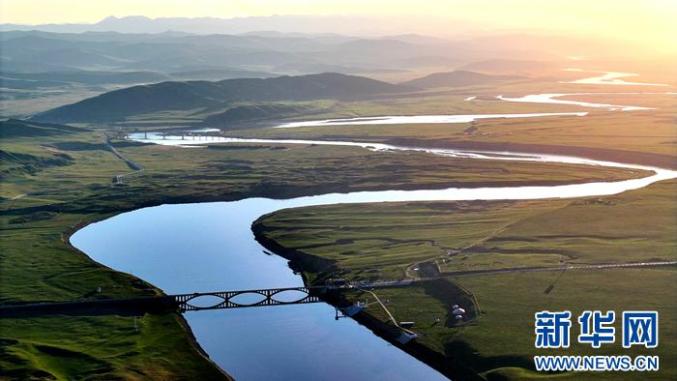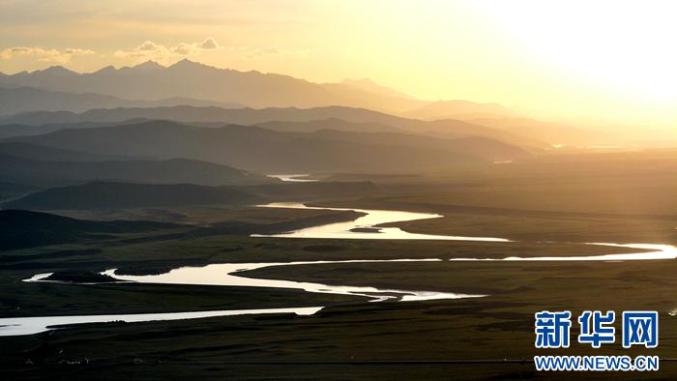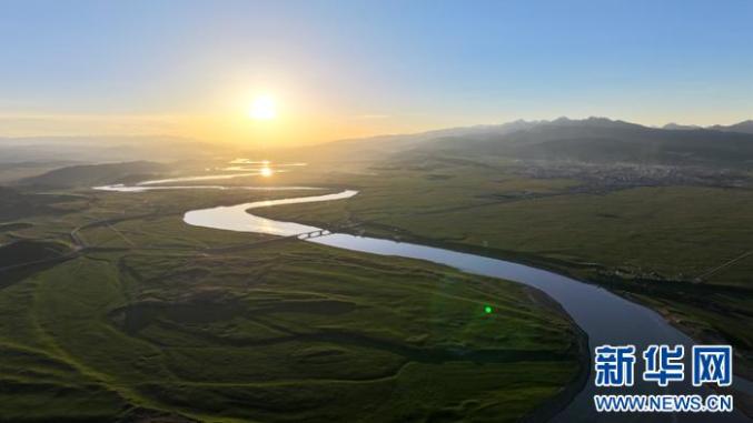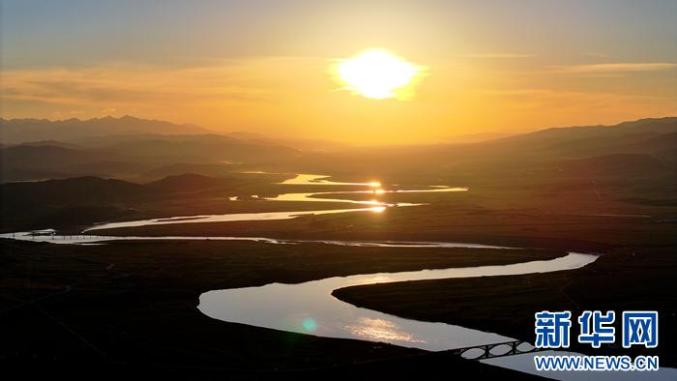 夏天是甘肃省甘南藏族自治州玛曲县最美的季节。夕阳西下,阳光透过漫天红云,照在青青草原、蜿蜒黄河上,金色笼罩、光波跳动,景致壮美迷人。近年来,玛曲大力实施湖泊湿地保护、草原生态保护与修复、防洪治理等生态治理项目,黄河玛曲段的生态环境得到明显改善。(王生元 桑杰加 罗主索巴)