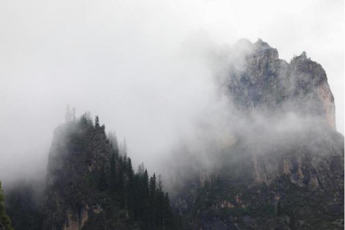 扎尕那景区云雾缭绕的山峰。新华网发(童张伟 摄)