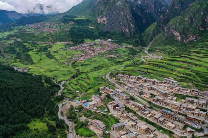 扎尕那景区的藏式村落。新华网发(童张伟 摄)