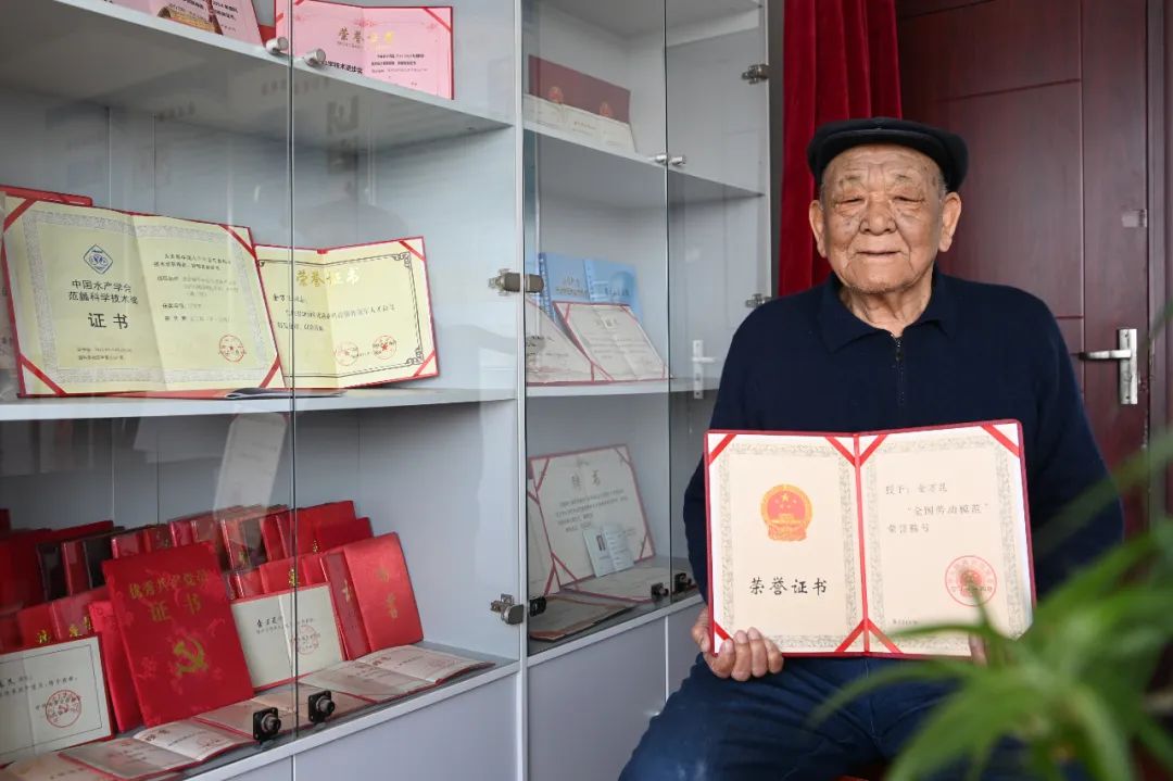 今年91岁高龄的金万昆依旧奋战在育种一线,他倾其一生培育出11个“国审”水产新品种。他说“只要是我不停止呼吸,最后一分钟我也为水产种业奋斗到底。”