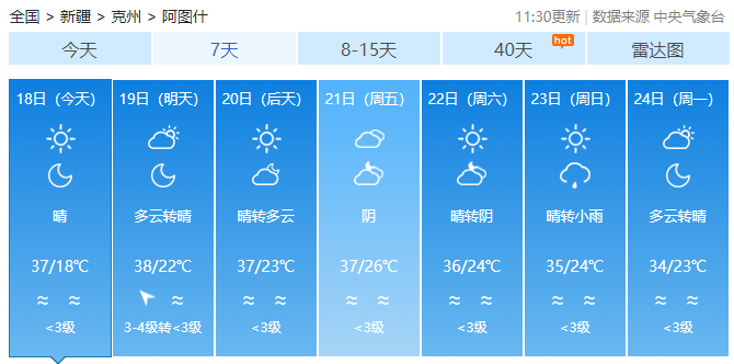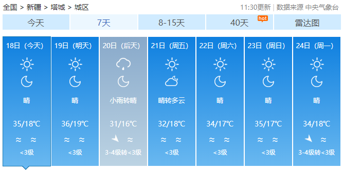 未来5天,全疆大部山区局地有降水,然而降水仍不能阻止高温的步伐。