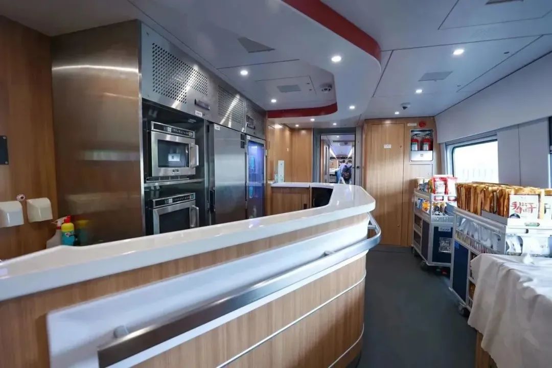 车体编号以CA开头,一般在卧铺车与硬座车之间编挂有餐车,餐车配有烤箱、冰柜、电磁炉等相应的厨房设施,还有相应的酒水饮料和餐食,有些餐车甚至还可以在线定肯德基等快餐,简直就是吃货们的福音 。车厢内配有暖色调的餐桌、餐椅、烘托出一种舒适高雅的用餐环境。