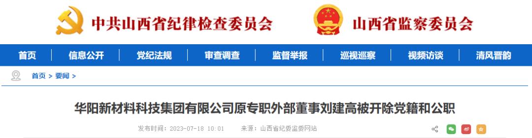 日前,经省委批准,省纪委监委对华阳新材料科技集团有限公司原专职外部董事刘建高严重违纪违法问题进行了立案审查调查。经查,刘建高理想信念丧失,纪法底线失守,无视中央八项规定精神,收受礼品,接受可能影响公正执行公务的旅游安排,接受管理服务对象提供的司机和车辆服务;违反组织原则,不按规定报告个人有关事项,违规为他人在职务调整晋升等方面谋取利益;为亲友的经营活动谋取利益,收受礼品礼金,由他人支付应由本人支付的费用;罔顾职责使命,对违规开展虚假贸易业务,造成国有资产重大损失的行为负有主要领导责任;靠企吃企,大搞权钱交易,利用职务便利,为他人在工程承揽、职务晋升等方面谋利,并非法收受巨额财物。